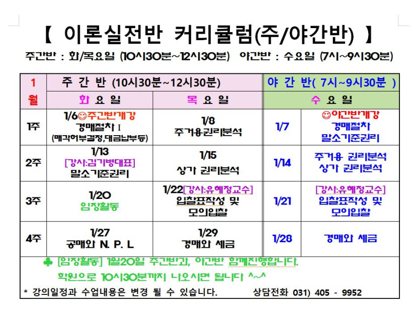 26년 1월 이론실전반 강의일정입니다. [20일 화요일은 임장활동일 입니다] 페이지 정보 작성자 미소뱅크 댓글 0건 조회 233회 작성일 25-12-22 15:31 본문 26년 1월 이론실전반 강의일정입니다. [20일 화요일은 임장활동일 입니다] 목록 이전글2월 이론실전반 강의일정입니다 [19일 법원견학 예정입니다] 26.01.27 다음글12월 이론실전반 강의일정입니다 [18일 법원견학 예정입니다] 25.11.26 댓글목록 댓글목록 등록된 댓글이 없습니다.