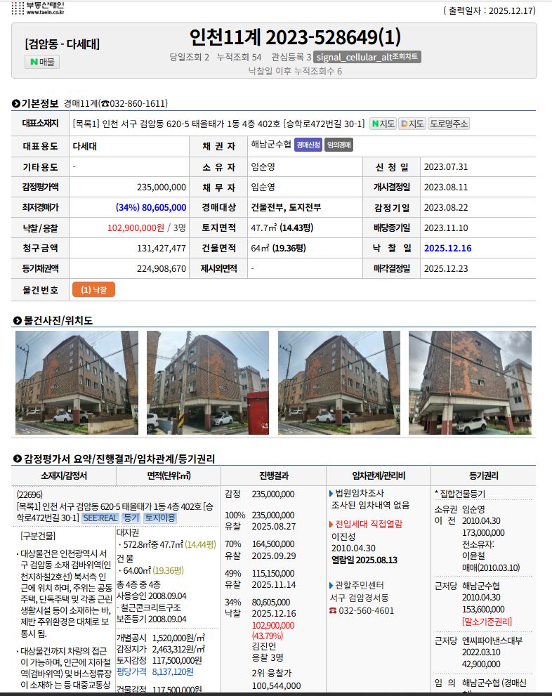 [수강생] 김*호님 인천 검암동 빌라낙찰 축하드려요~~ 페이지 정보 작성자 미소뱅크 댓글 0건 조회 229회 작성일 25-12-17 14:50 본문 김*호님 인천 검암동 빌라낙찰 축하드려요~~ 목록 이전글[수강생] 노*영님 충남 천안 상가낙찰 축하드려요~~ 25.12.17 다음글[수강생] 김*영님 인천 숭의동 네번째 낙찰 축하드려요~~ 25.12.10 댓글목록 댓글목록 등록된 댓글이 없습니다.