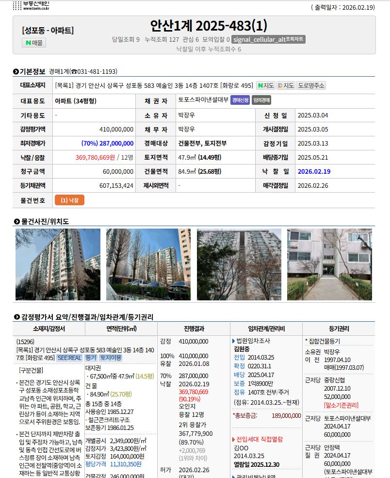 [수강생] 최*숙님 안산 성포동 아파트낙찰 축하드려요~ 페이지 정보 작성자 미소뱅크 댓글 0건 조회 161회 작성일 26-02-26 10:13 본문 최*숙님 안산 성포동 아파트낙찰 축하드려요~ 목록 이전글[컨설팅] 조*옥님 화성 새솔동 아파트낙찰 축하드려요~ 26.02.26 다음글[수강생] 김*우님 시흥 거모동 빌라낙찰 축하드려요~ 26.02.10 댓글목록 댓글목록 등록된 댓글이 없습니다.