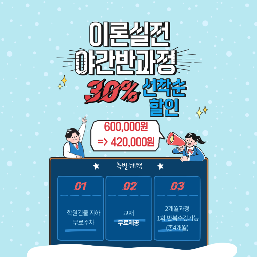 이론실전 야간반 수강료 30프로 선착순 할인행사