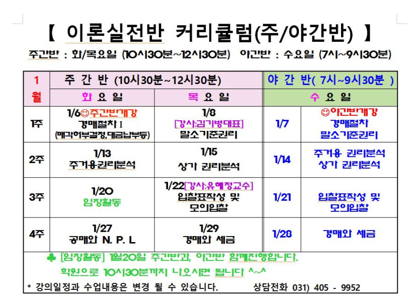 26년 1월 이론실전반 강의일정입니다. [20일 화요일은 임장활동일 입니다] 페이지 정보 작성자 미소뱅크 댓글 0건 조회 5회 작성일 25-12-22 15:31 본문 26년 1월 이론실전반 강의일정입니다. [20일 화요일은 임장활동일 입니다] 목록 다음글12월 이론실전반 강의일정입니다 [18일 법원견학 예정입니다] 25.11.26 댓글목록 댓글목록 등록된 댓글이 없습니다.